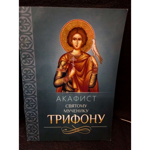 О святы́й мучениче Христо́в Три́фоне, ско́рый помо́щниче и всем к тебе́ прибега́ющим и моля́щимся пред святы́м твои́м о́бразом скоропослу́шный предста́телю! Услы́ши ны́не и на вся́кий час моле́ние нас, недосто́йных рабо́в твои́х, почита́ющих святу́ю па́мять твою́ во всечестне́м хра́ме сем, и предста́тельствуй о нас пред Го́сподем на вся́ком ме́сте. Ты бо, уго́дниче Христо́в, в вели́ких чудесе́х возсия́вый, источа́яй цельбы́ притека́ющим к тебе́ с ве́рою и су́щия в ско́рбех челове́ки заступа́яй, сам обеща́лся еси́ пре́жде исхо́да твоего́ от жития́ сего́ тле́ннаго молитися за ны ко Го́споду и испроси́л еси́ у Него́ дар сей: а́ще кто в какой-либо нужде́, печа́ли и боле́зни душе́вней или́ теле́сней призыва́ти начне́т свято́е и́мя твое́, той да изба́влен бу́дет от вся́каго прило́га зла́го. И я́коже ты иногда́ дщерь царе́ву, в Ри́ме гра́де от диа́вола му́чиму, исцели́л еси́, си́це и нас от лю́тых его́ ко́зней сохрани́ во вся дни живота́ на́шего, наипа́че же в день после́дняго на́шего издыха́ния предста́тельствуй о нас. Бу́ди нам тогда́ помо́щник и ско́рый прогони́тель лука́вых духо́в, и к Ца́рствию Небе́сному предводи́тель. И иде́же ты ны́не предстоиши с ли́ки святы́х у Престо́ла Бо́жия, моли́ Го́спода, да сподо́бит и нас прича́стники быти присносу́щнаго весе́лия и ра́дости, да с тобо́ю ку́пно прославляем Отца́ и Сы́на и Свята́го Уте́шителя Ду́ха во ве́ки. Ами́нь.
