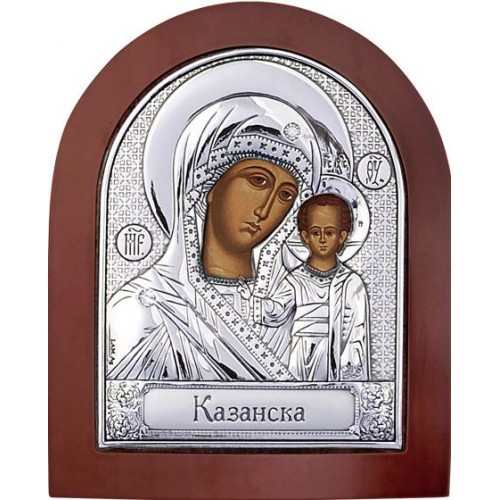 Икона серебрянная 85x100 Казанская деревянная основа шелкография