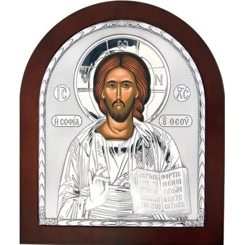 Икона серебрянная 260x310 Христос Спаситель деревянная основа шелкография