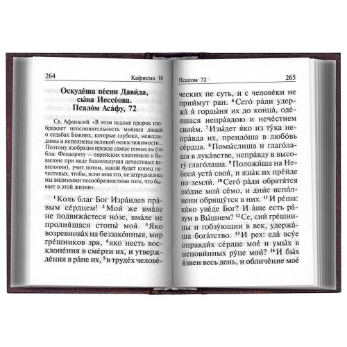 Настоящую Псалтирь, напечатанную гражданским шрифтом, по праву можно назвать полной Псалтирью: она издается с традиционным дополнением Символа веры свт. Афанасия Александрийского, слова свт. Василия Великого о Псалтири и чина пения 12 псалмов. Кроме того, в книгу помещены краткие толкования псалмов, молитвы для чтения Псалтири по живым и усопшим, порядок чтения псалмов на всякую потребу и келейное правило чтения Псалтири прп. Серафима Саровского.