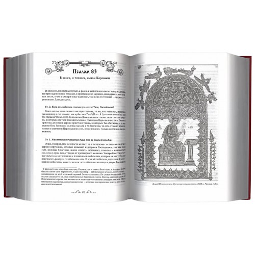 Предлагаемая «Толковая Псалтирь» иллюстрирована черно-белыми изображениями икон, фресок, мозаик и миниатюр.