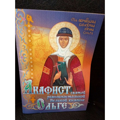 О, свята́я равноапо́стольная вели́кая княги́не Ольго, первоуго́днице Россíйская, те́плая о на́съ предъ Бо́гомъ хода́таице и моли́твеннице! Къ тебѣ́ прибѣга́емъ съ вѣ́рою и мо́лимся съ любо́вію: бу́ди на́мъ во все́мъ ко бла́гу помо́щница и споспѣ́шница и я́коже во вре́меннѣй жи́зни тща́лася еси́ просвѣти́ти пра́отцы на́ша свѣ́томъ святы́я вѣ́ры и наста́вити я́ твори́ти во́лю Госпо́дню, та́ко и ны́нѣ, въ небе́снѣй пребыва́я свѣ́тлости, благопрія́тными твои́ми къ Бо́гу моли́твами, вспомоществу́й на́мъ въ просвѣще́ніи ума́ и се́рдца на́шего свѣ́томъ Ева́нгелія Христо́ва, да преспѣва́емъ въ вѣ́рѣ, благоче́стіи и любви́ Христо́вѣ. Въ нищетѣ́ и ско́рби су́щія утѣ́ши, бѣ́дствующимъ пода́ждь ру́ку по́мощи, оби́димыя и напа́ствуемыя заступи́, заблу́дшія отъ пра́выя вѣ́ры и е́ресьми ослѣпле́нныя вразуми́, и испроси́ на́мъ у всеще́драго Бо́га вся́ блага́я и поле́зная въ жи́зни вре́меннѣй и вѣ́чнѣй, да та́ко благоуго́днѣ здѣ́ пожи́вше, сподо́бимся наслѣ́дія бла́гъ вѣ́чныхъ въ безконе́чномъ Ца́рствіи Христа́ Бо́га на́шего, Ему́же съ Отце́мъ и Святы́мъ Ду́хомъ подоба́етъ вся́кая сла́ва, че́сть и поклоне́ніе всегда́, ны́нѣ и при́сно и во вѣ́ки вѣко́въ. Ами́нь.