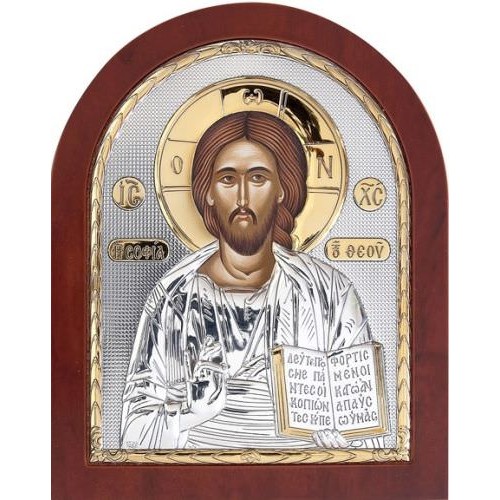 Икона серебрянная 156x190 Христос Спаситель деревянная основа шелкография позолота